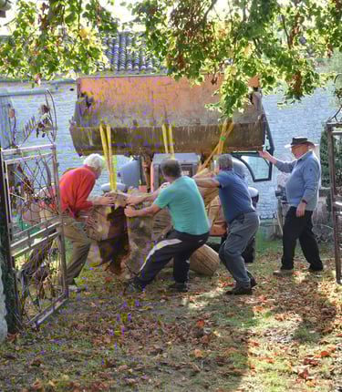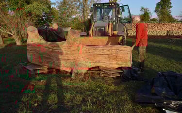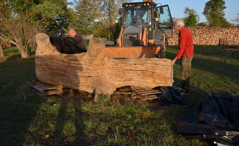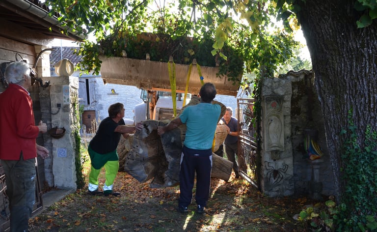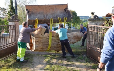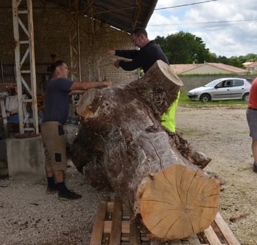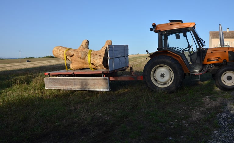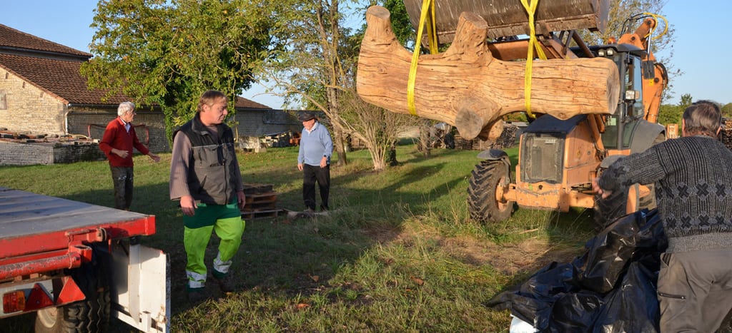 Transport chez Dany Moreau pour le délester de son écorce avec l'aide de Gilles Masson