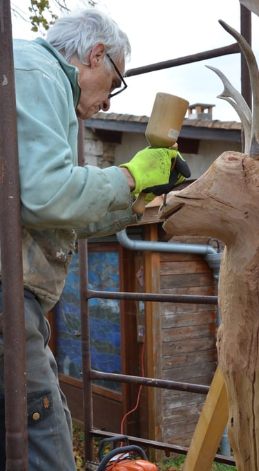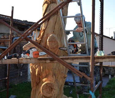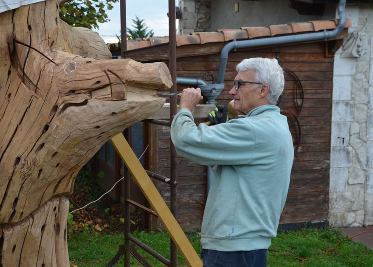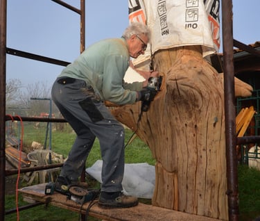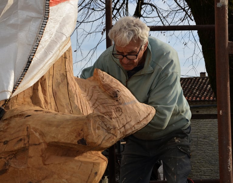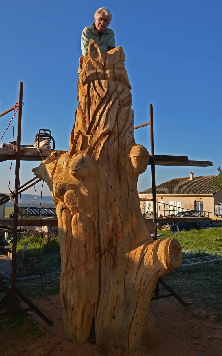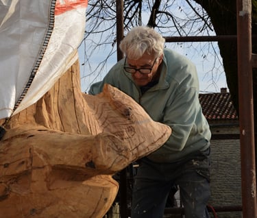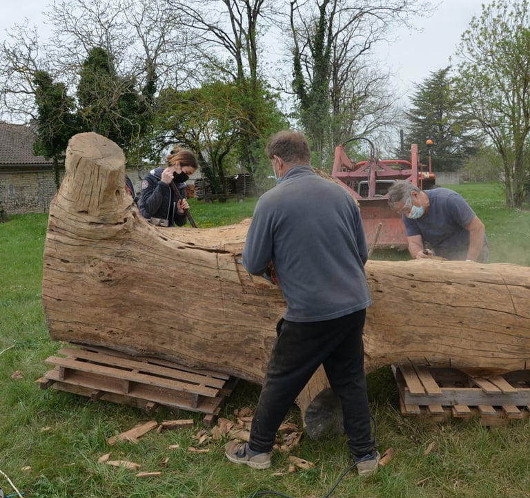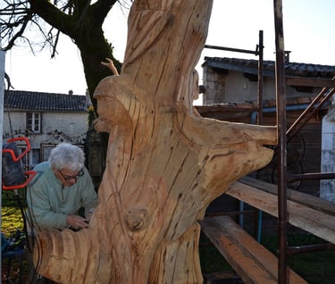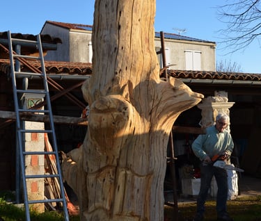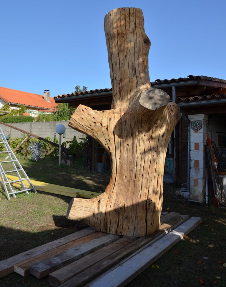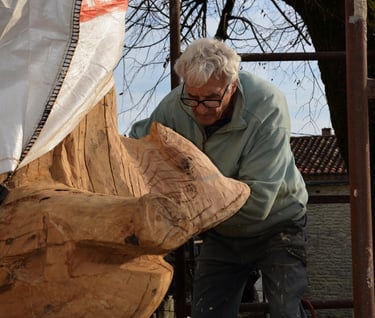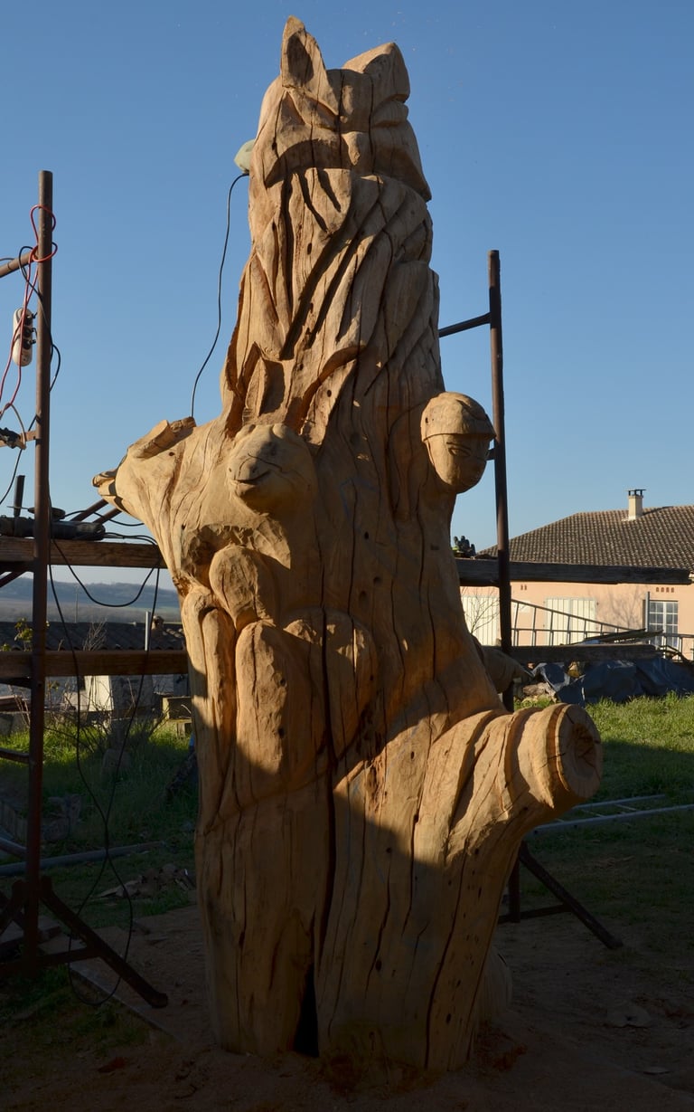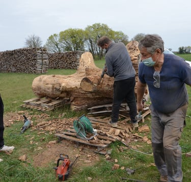 Le chêne de La Jauvigère vieux d'environ 300 ans était bien malade. Il a été décidé de l'abattre et de faire une sculpture dans le meilleur morceau.