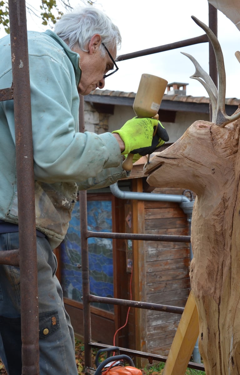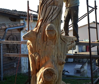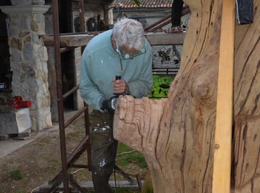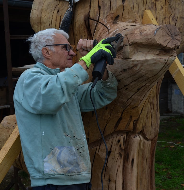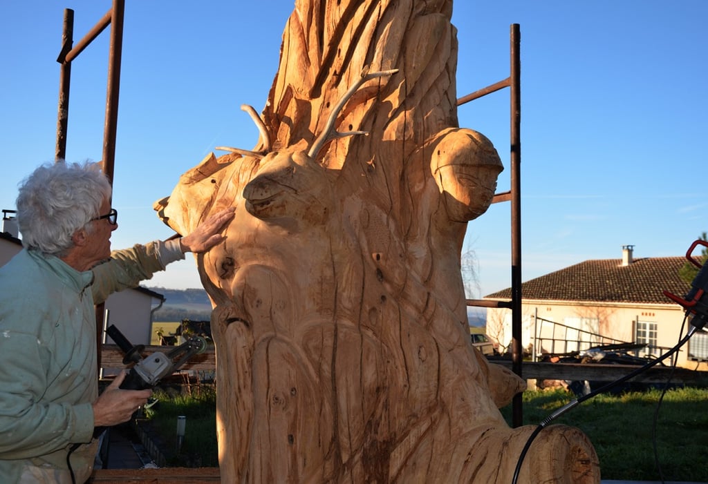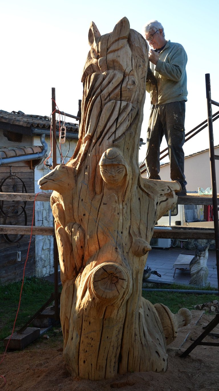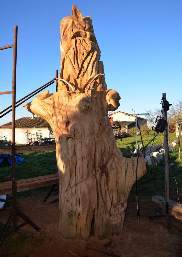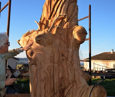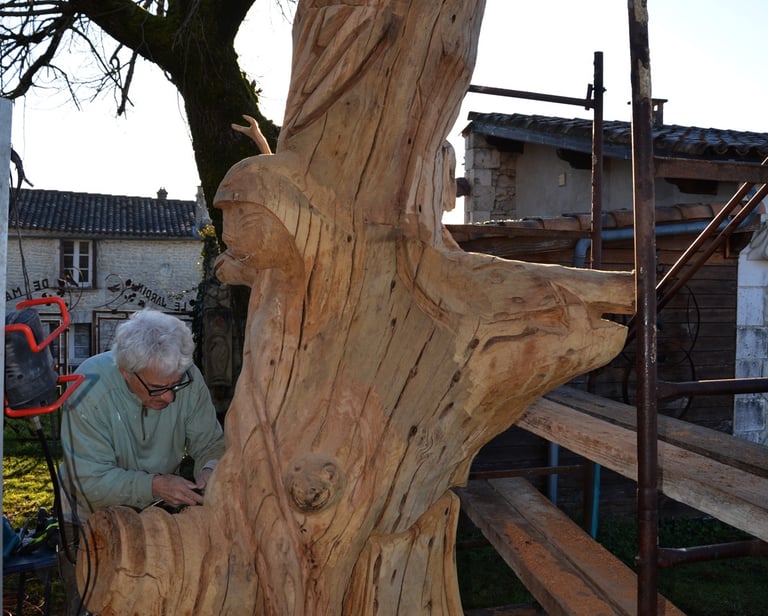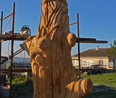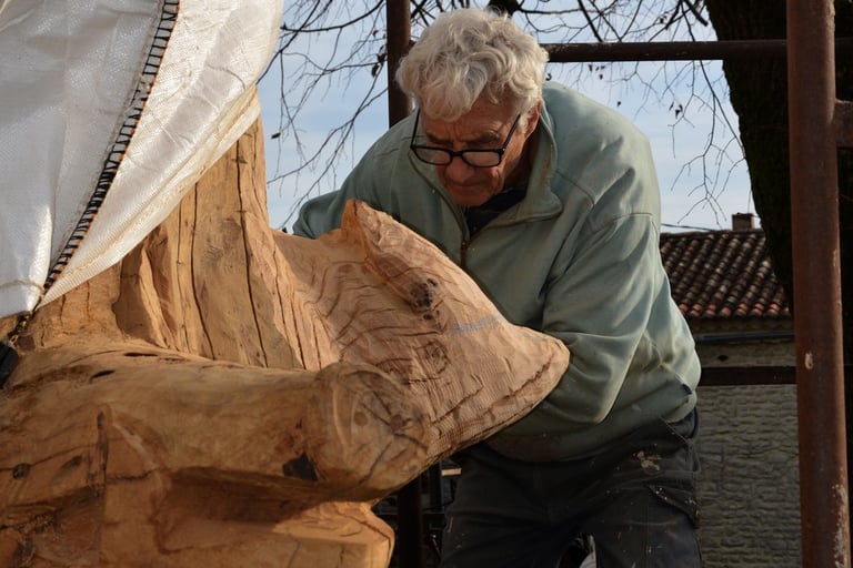 Le chêne de La Jauvigère vieux d'environ 300 ans était bien malade. Il a été décidé de l'abattre et de faire une sculpture dans le meilleur morceau.