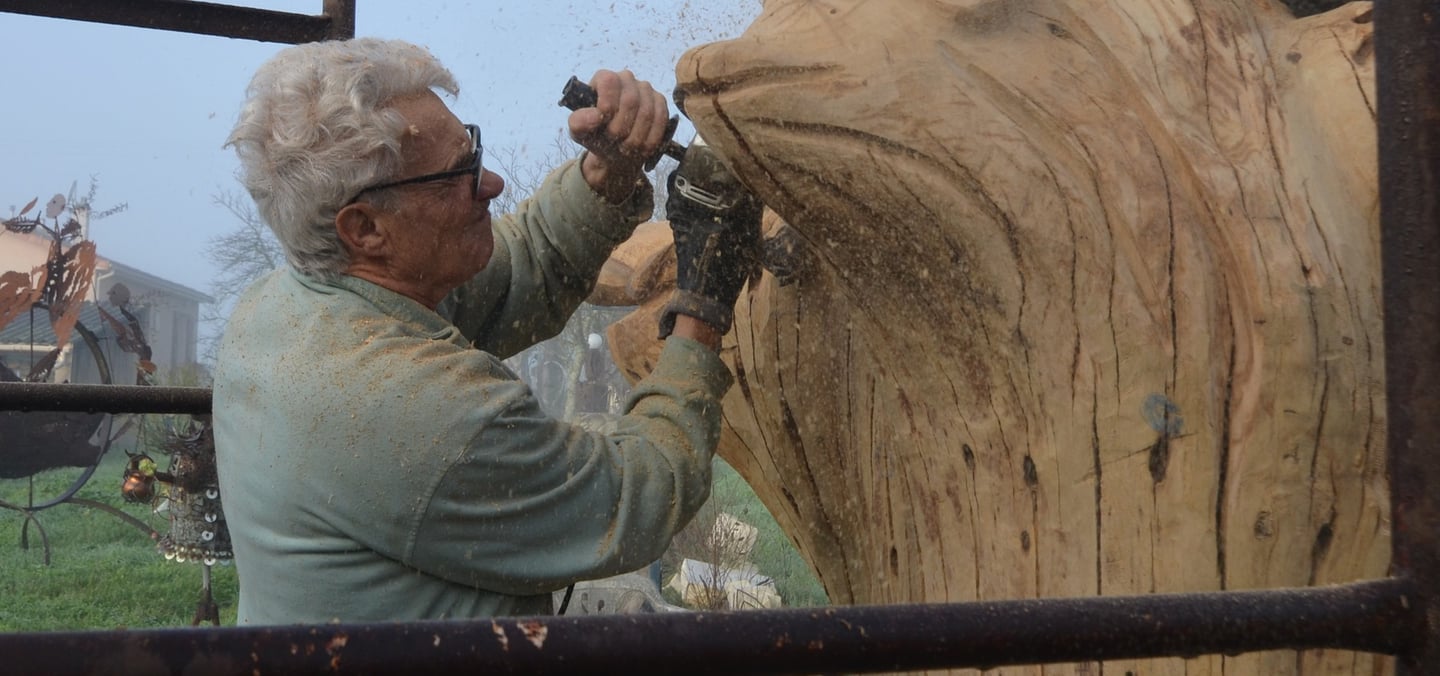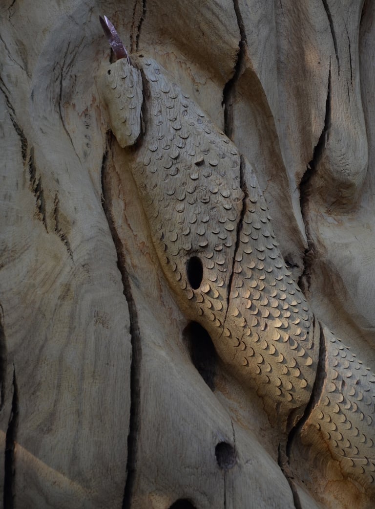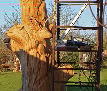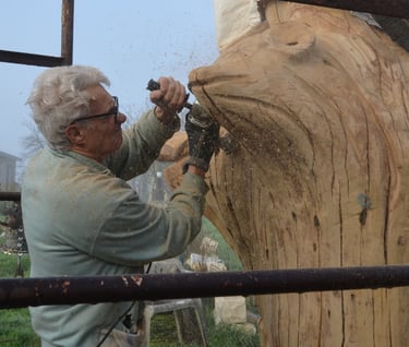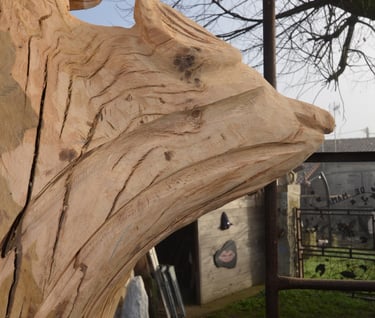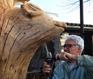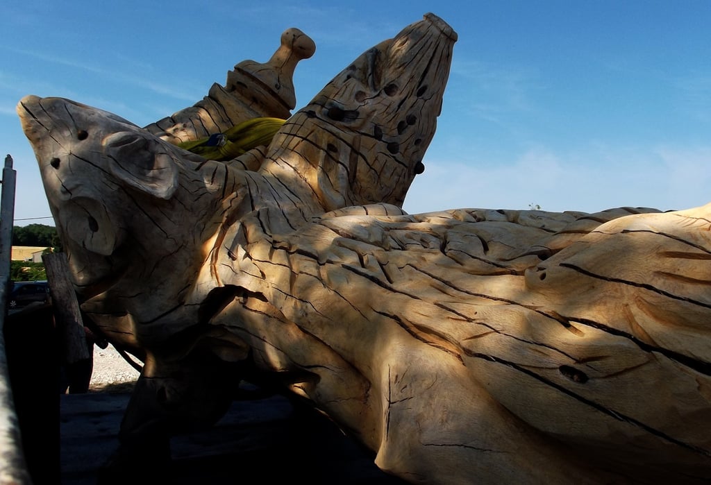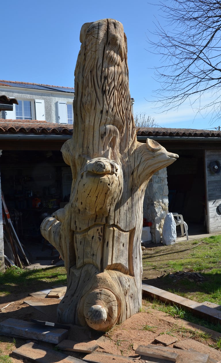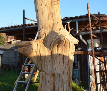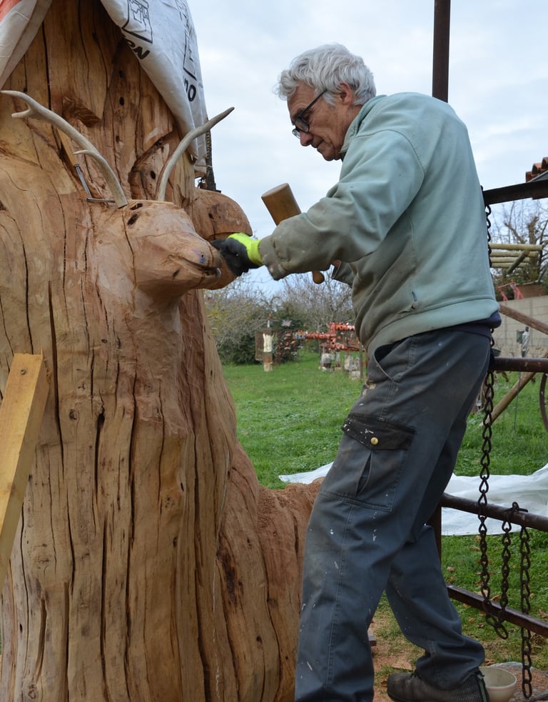Le chêne de La Jauvigère vieux d'environ 300 ans était bien malade. Il a été décidé de l'abattre et de faire une sculpture dans le meilleur morceau.