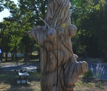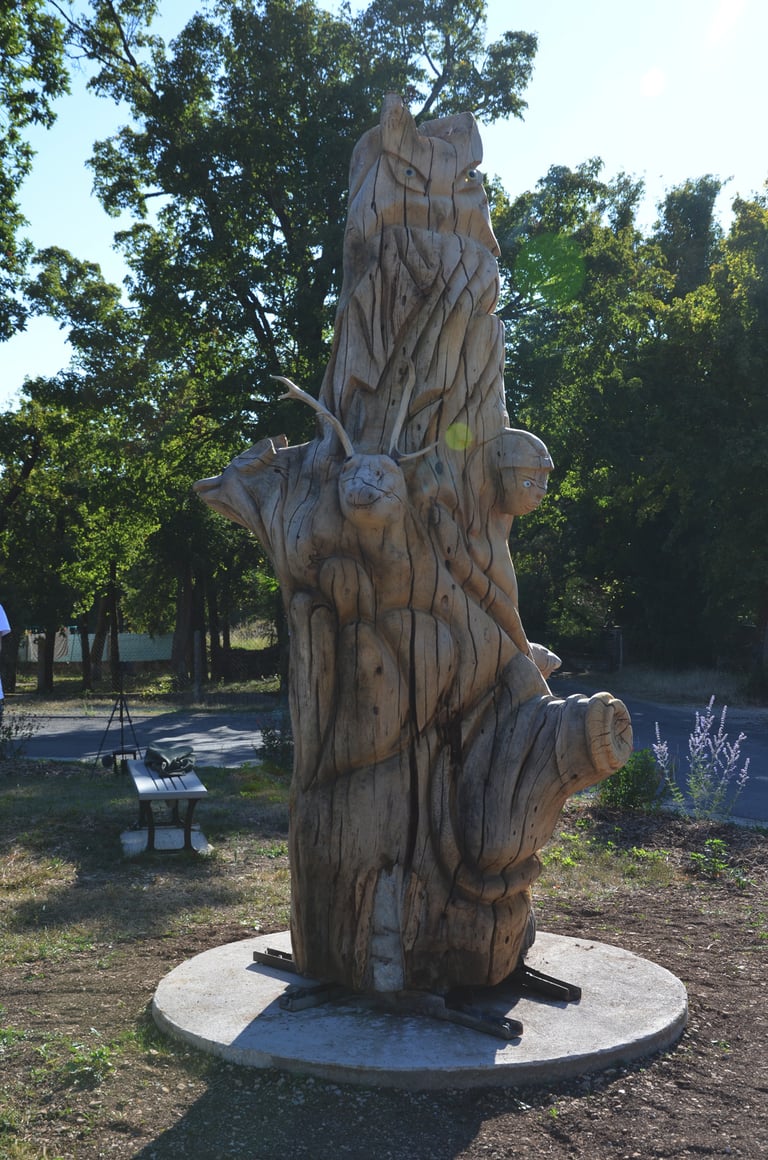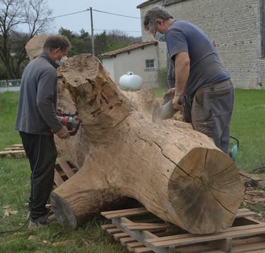 Le chêne reviendra ensuite sur le site où il a toujours vécu, mais cette fois-ci sculpté, posé sur un socle au milieu d'un petit parc.